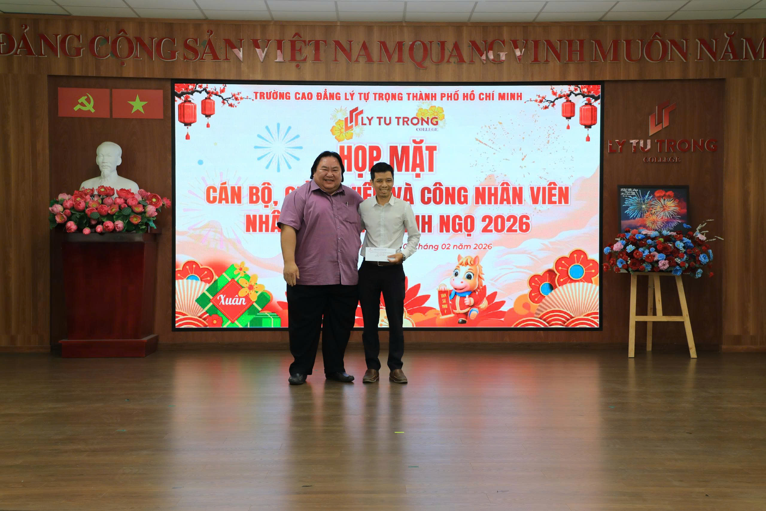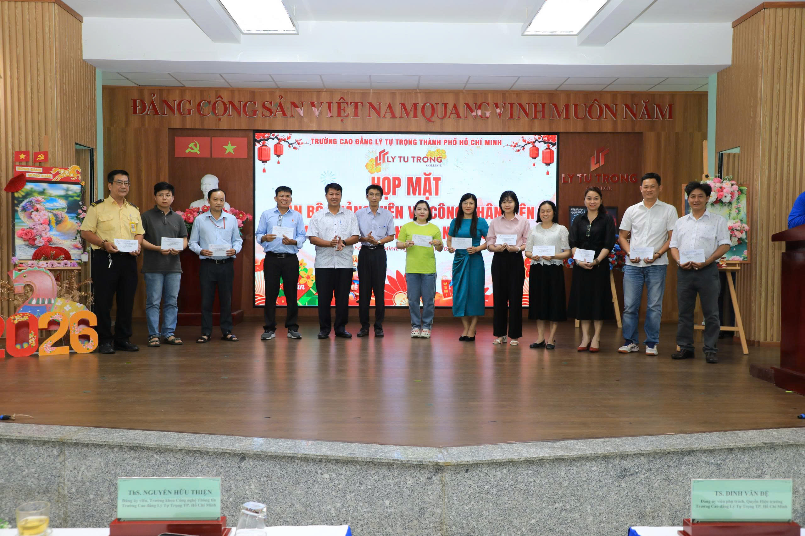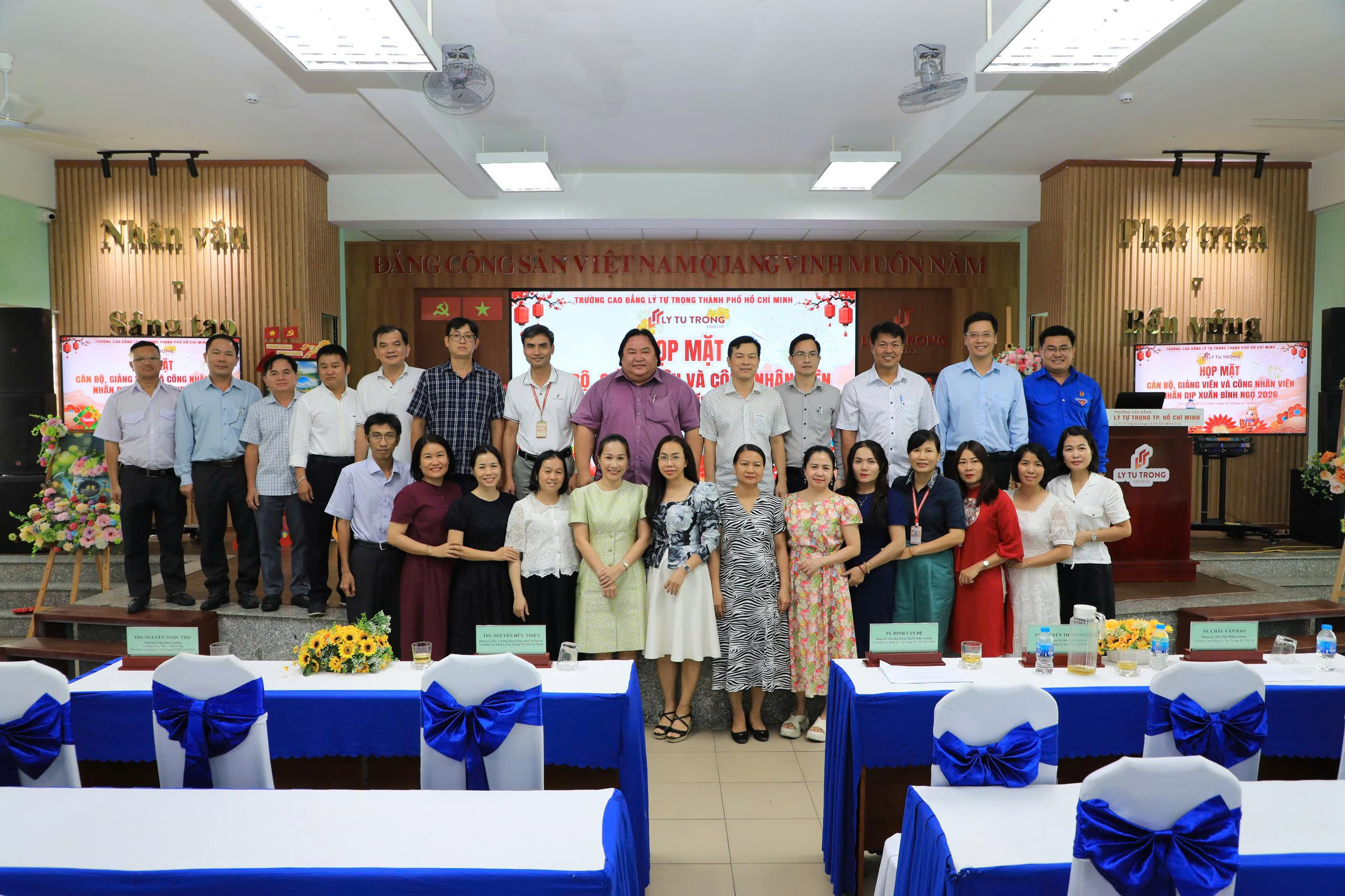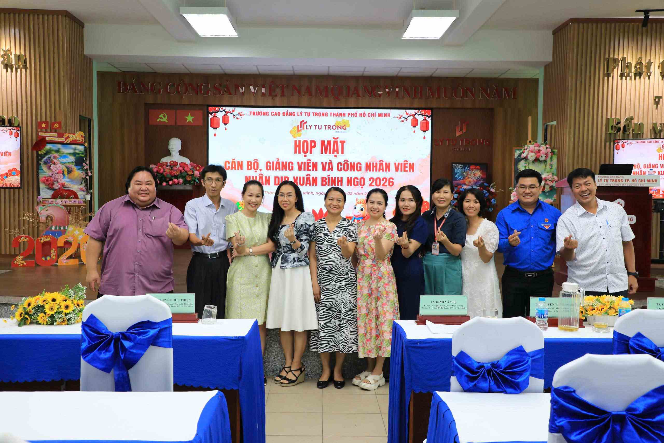 Chiều nay ngày 07/02/2026, Trường Cao đẳng Lý Tự Trọng TP. Hồ Chí Minh long trọng tổ chức Họp mặt toàn thể Cán bộ, Giảng viên, Nhân viên nhân dịp Xuân Bính Ngọ 2026. Chương trình là dịp để Nhà trường cùng nhìn lại chặng đường nỗ lực, đoàn kết và những kết quả đáng ghi nhận trong năm 2025; đồng thời triển khai phương hướng, nhiệm vụ trọng tâm năm 2026 và giai đoạn 2025 – 2030.