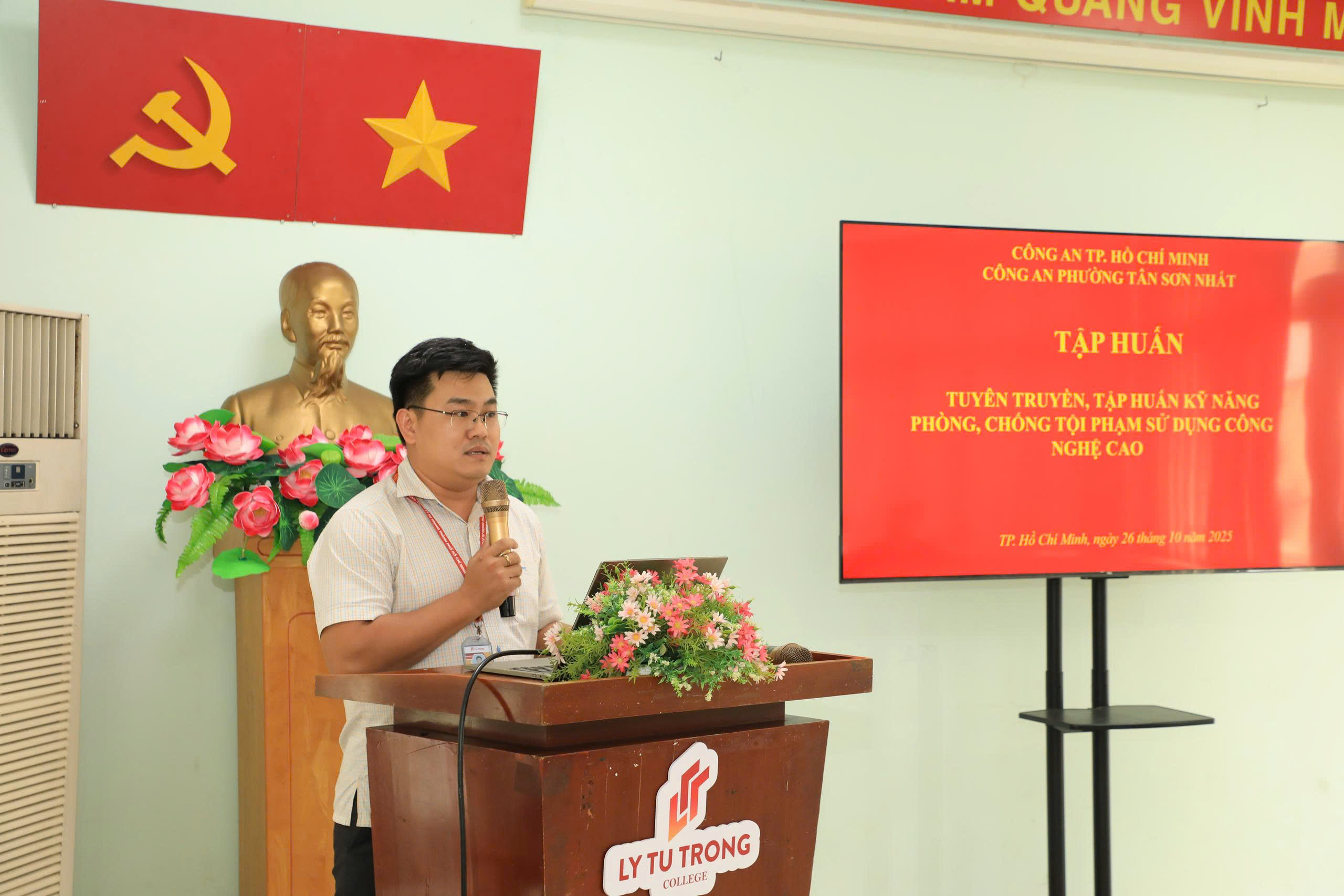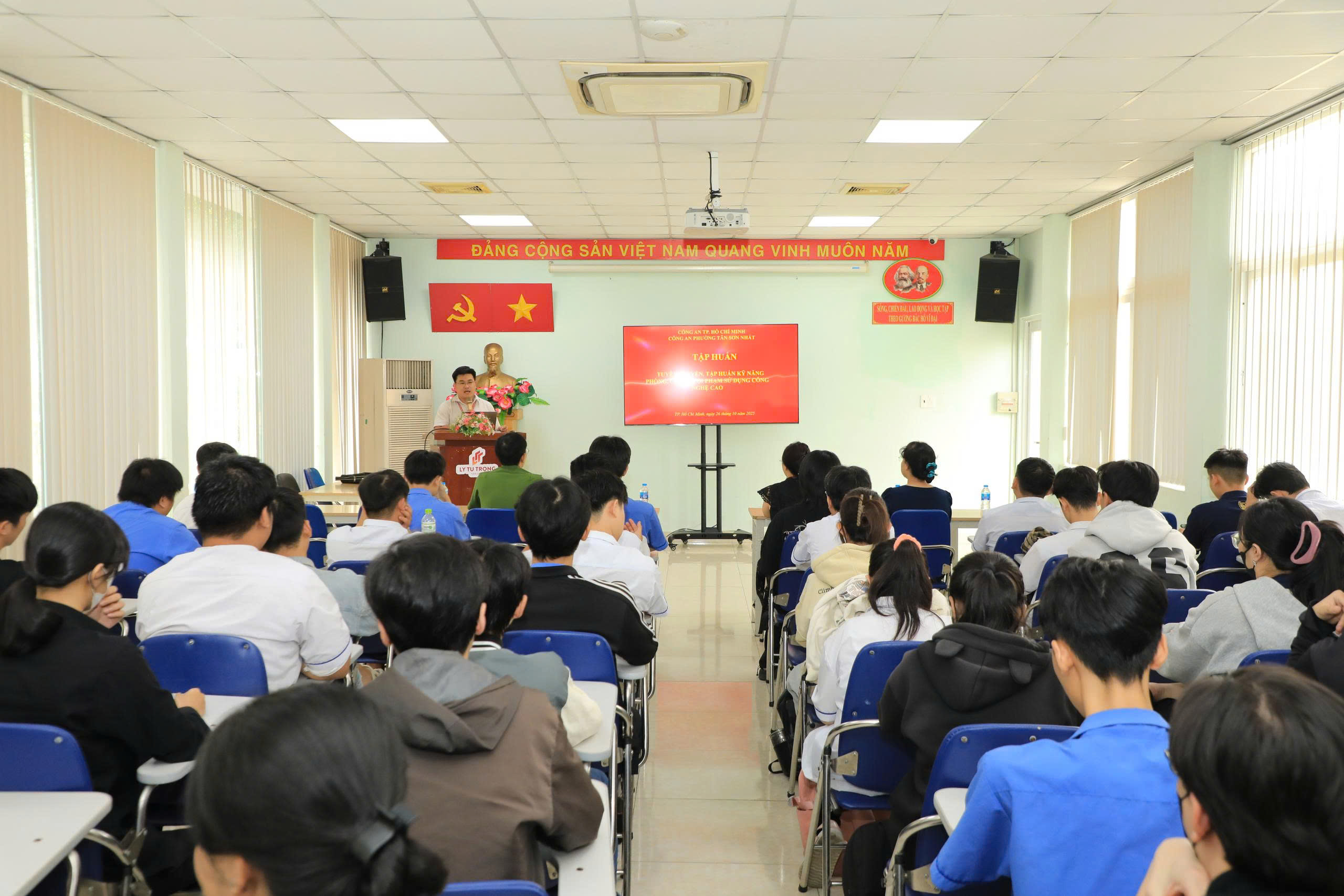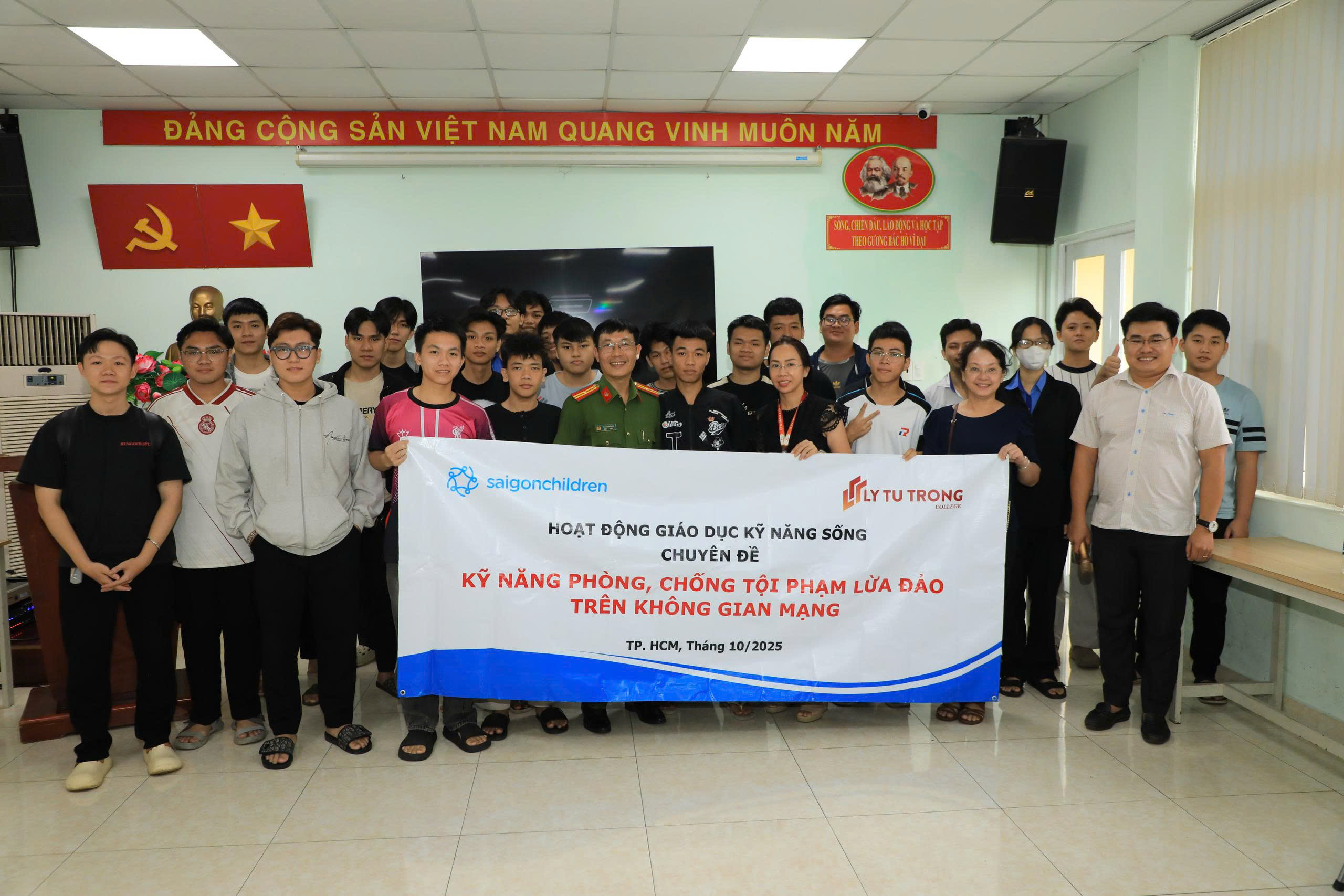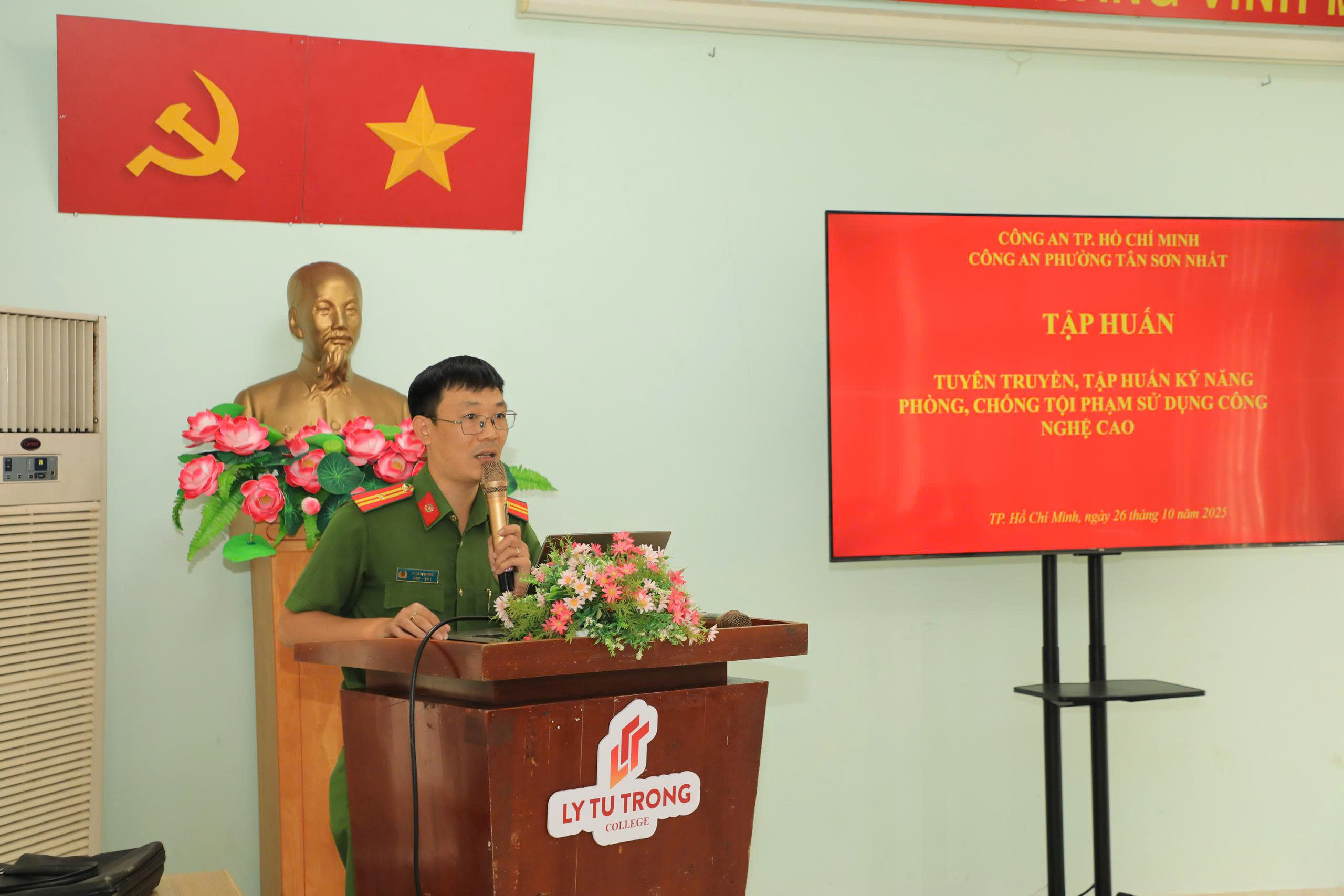 Chiều ngày 26/10/2025, Trường Cao đẳng Lý Tự Trọng TP. Hồ Chí Minh phối hợp Công an phường Tân Sơn Nhất, Tổ chức SaiGon Children’s Charity CIO tổ chức chương trình tập huấn “Phòng chống tội phạm lừa đảo trong không gian mạng”.