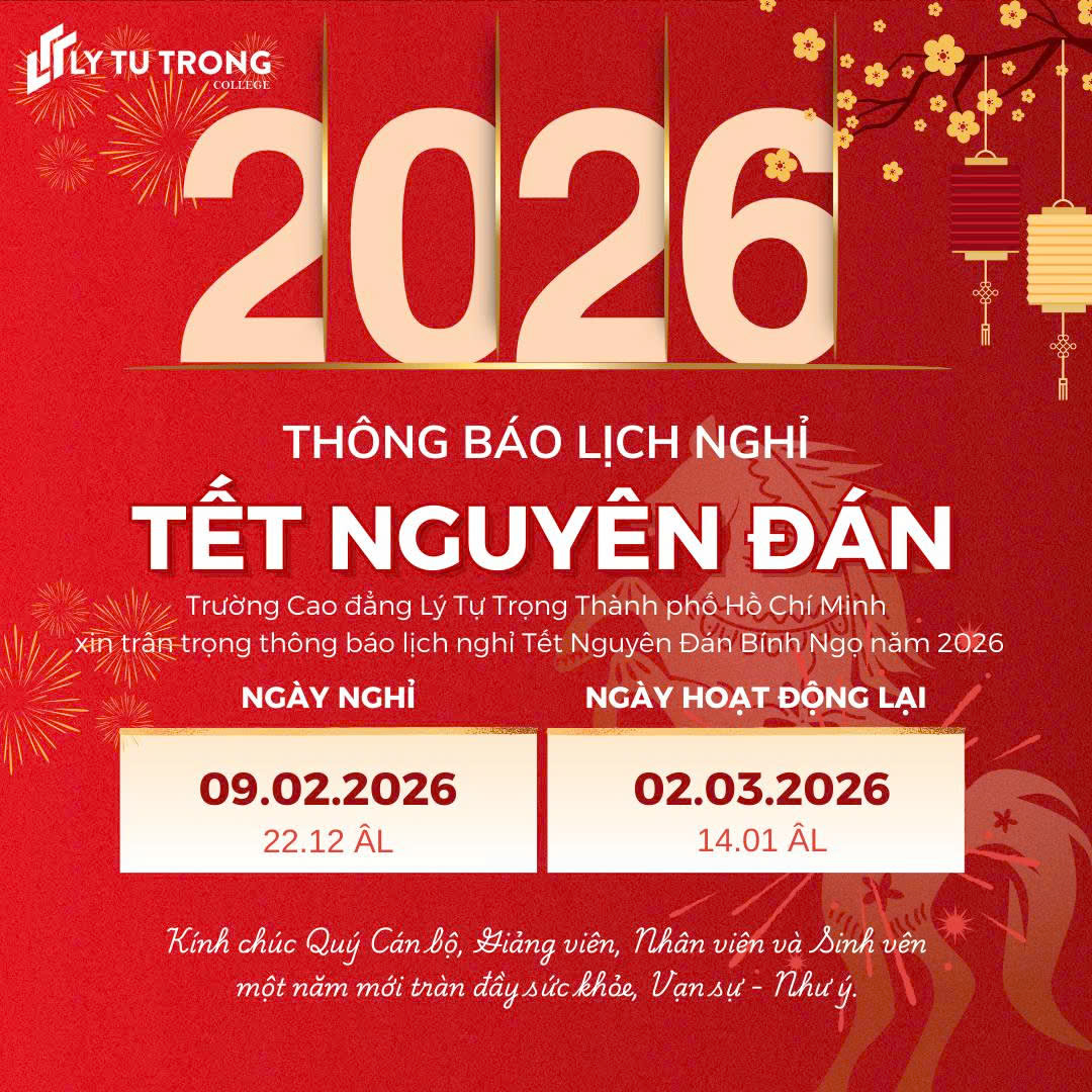 TRƯỜNG CAO ĐẲNG LÝ TỰ TRỌNG THÀNH PHỐ HỒ CHÍ MINH THÔNG BÁO LỊCH NGHỈ TẾT NGUYÊN ĐÁN BÍNH NGỌ 2026